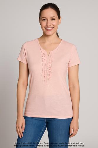 Baumwolle gehört nach wie vor zu den am häufigsten verarbeiteten Materialien, wenn von Damentops und -shirts die Rede ist. Baumwolle ist wunderbar weich und hautverträglich – mit einem Stretchanteil passt sie sich zudem der Figur an und zaubert eine tolle Silhouette. Total pflegeleicht und auch im Urlaub unverzichtbar sind Tops aus bügelfreier Viskose, die selbst einen mehrstündigen Flug übersteht, ohne zu knittern. Details wie Spitze oder Pailletten setzen zwar tolle Akzente, erfordern jedoch intensive Pflege.