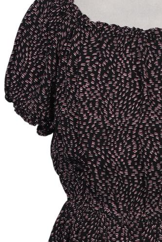 | Details | Jersey, Rüschen, Kurzarm, V-Ausschnitt, Gummizug/Tunnelzug, Punkte |