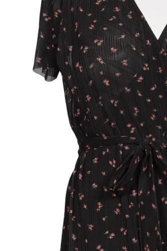 | Details | Tüll, Kurzarm, Bindegürtel, Wickeloptik, V-Ausschnitt, Floral |