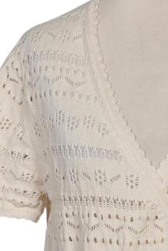| Details | Gehäkelt, Grobstrick, Kurzarm, Bindegürtel, V-Ausschnitt |