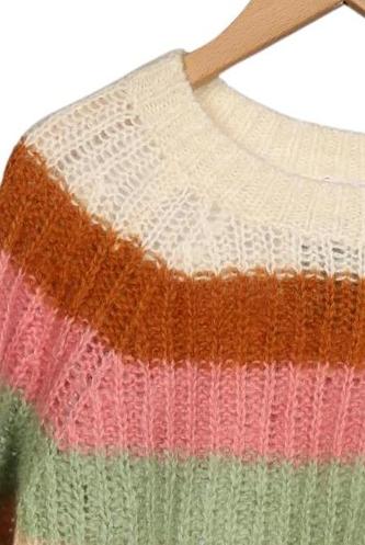 | Details | Grobstrick, Langarm, Rundhals, Streifen |