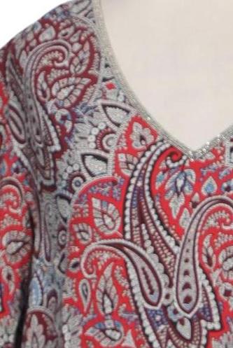 | Details | Langarm, V-Ausschnitt, verschlusslos, Paisley |