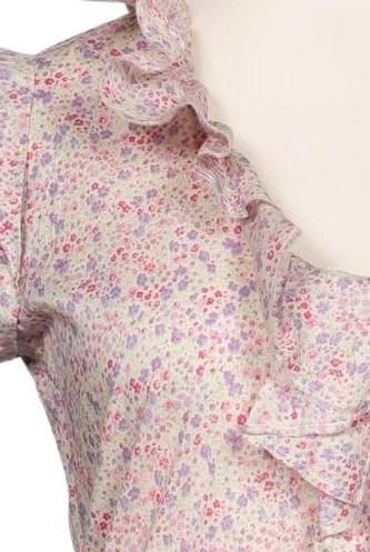 | Details | Rüschen, Kurzarm, V-Ausschnitt, verschlusslos, Floral |