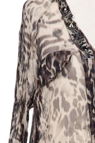 | Details | Rüschen, Chiffon, Langarm, V-Ausschnitt, verschlusslos, Leopard |