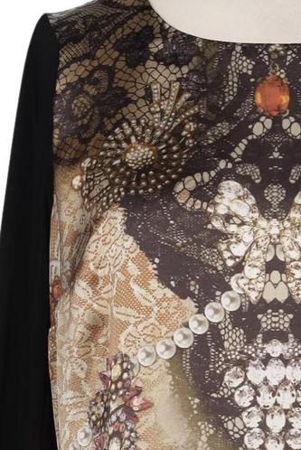 | Details | Satin, Jersey, Dreiviertelarm, Rundhals, verschlusslos, Floral |