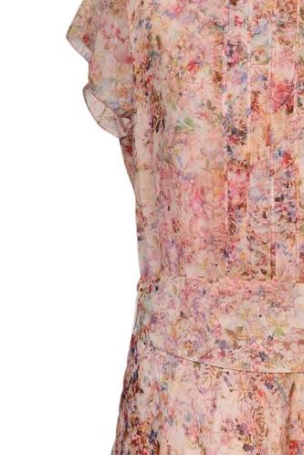 | Details | Kurzarm, Bindegürtel, Rundhals, Reißverschluss/Knöpfe hinten, Floral |