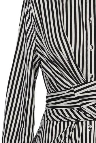 | Details | Langarm, Bindegürtel, Rundhals, Front Knopfleiste, Streifen |