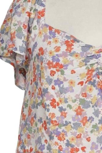 | Details | Rüschen, Kurzarm, V-Ausschnitt, Reißverschluss/Knöpfe hinten, Floral |
