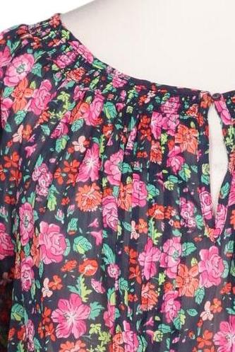 | Details | Chiffon, Dreiviertelarm, Rundhals, verschlusslos, Floral |