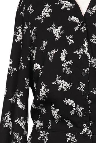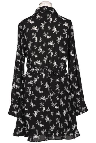 | Details | Chiffon, Langarm, Bindegürtel, V-Ausschnitt, Front Knopfleiste, Floral |