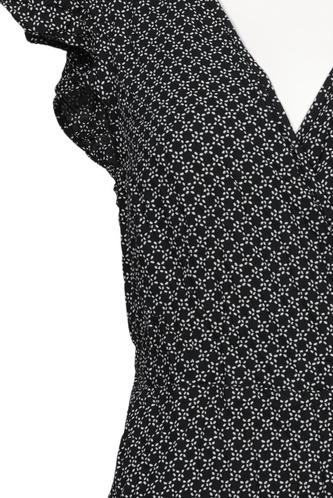 | Details | Jersey, Rüschen, Kurzarm, Bindegürtel, Wickeloptik, V-Ausschnitt, Punkte |
