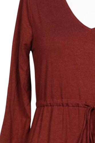 | Details | Jersey, Rüschen, Dreiviertelarm, V-Ausschnitt, Gummizug/Tunnelzug, Einfarbig |