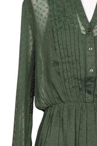 | Details | Chiffon, Langarm, V-Ausschnitt, Front Knopfleiste, Punkte |