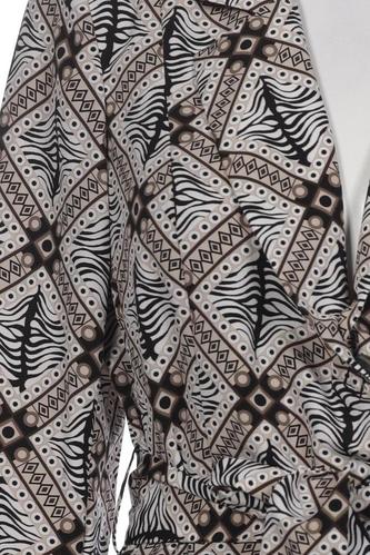 | Details | Langarm, Bindegürtel, V-Ausschnitt, Front Knopfleiste, Motivprint |