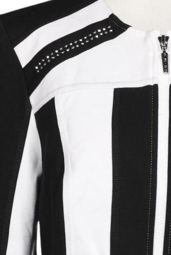 | Details | Langarm, V-Ausschnitt, Front Reißverschluss, Streifen |