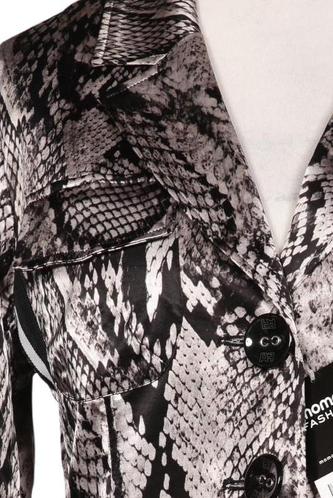 | Details | Satin, Langarm, V-Ausschnitt, Front Knopfleiste, Motivprint |