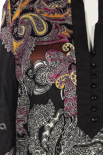 | Details | Satin, Dreiviertelarm, V-Ausschnitt, verschlusslos, Paisley |