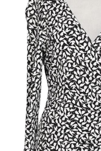 | Details | Jersey, Langarm, Wickeloptik, V-Ausschnitt, Motivprint |