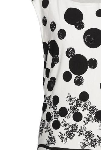 | Details | Jersey, ärmellos, Rundhals, Punkte, Streifen |