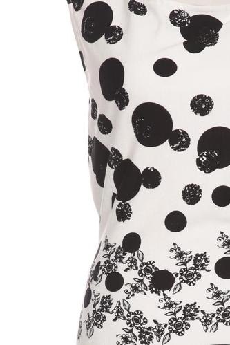| Details | Jersey, Kurzarm, Rundhals, Reißverschluss/Knöpfe hinten, Punkte, Streifen |