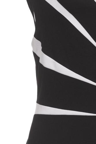 | Details | Jersey, ärmellos, Rundhals, Reißverschluss/Knöpfe hinten, Streifen |