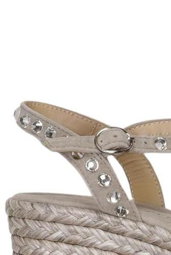 | Details | Wildlederoptik, Schnallen, Metall, Bast, Stollen |