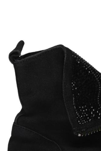| Details | Strass, Wildlederoptik, Schnallen, Gummi, Seitreißverschluss |
