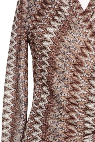 | Details | Grobstrick, Langarm, Wickeloptik, V-Ausschnitt, Motivprint |