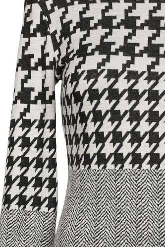 | Details | Grobstrick, Dreiviertelarm, V-Ausschnitt, Hahnentritt |