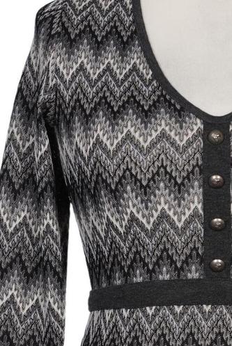 | Details | Grobstrick, Dreiviertelarm, Bindegürtel, V-Ausschnitt, Front Knopfleiste, Motivprint |