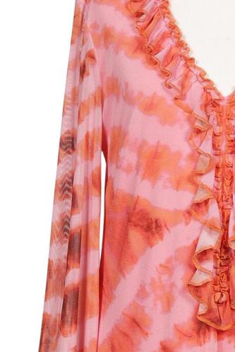 | Details | Jersey, Rüschen, Langarm, V-Ausschnitt, Batik |