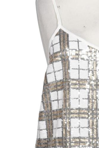 | Details | Satin, Pailletten, metallic, ärmellos, V-Ausschnitt, Kariert |