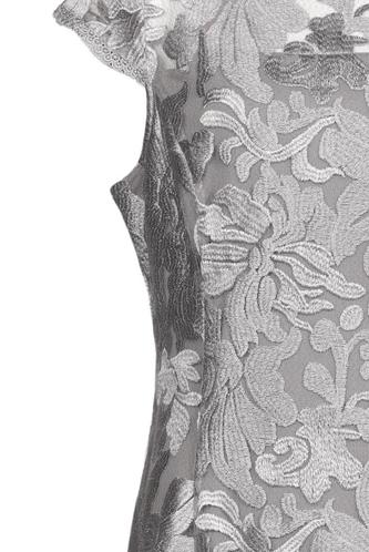 | Details | Spitze, metallic, Kurzarm, Rundhals, Reißverschluss/Knöpfe hinten, Floral |