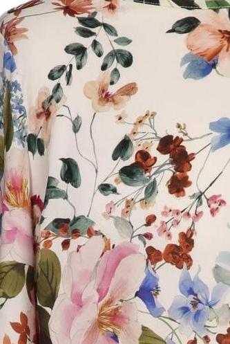 | Details | Satin, Langarm, Rundhals, verschlusslos, Floral |