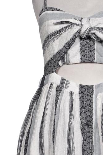 | Details | Cutouts, ärmellos, V-Ausschnitt, Front Knopfleiste, Streifen |