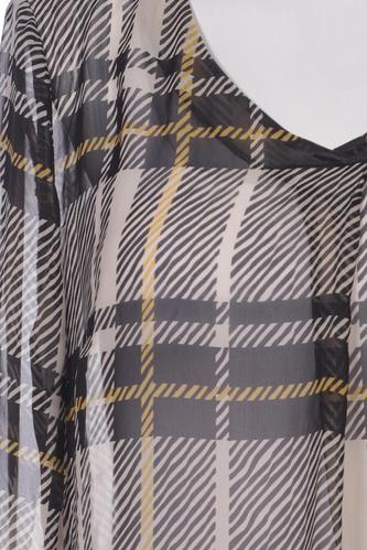 | Details | Chiffon, Langarm, V-Ausschnitt, verschlusslos, Kariert |