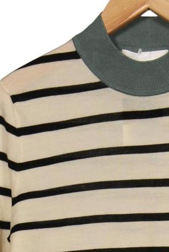 | Details | Grobstrick, Dreiviertelarm, Rundhals, Streifen |