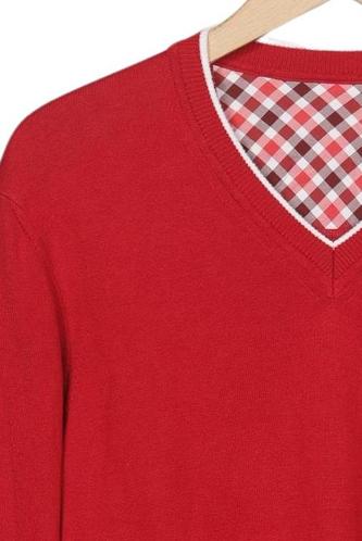 | Details | Grobstrick, Langarm, V-Ausschnitt, Einfarbig, Markenlogo |
