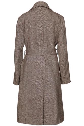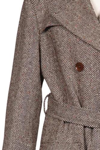 | Details | Bindegürtel, Front Knopfleiste, Hahnentritt |