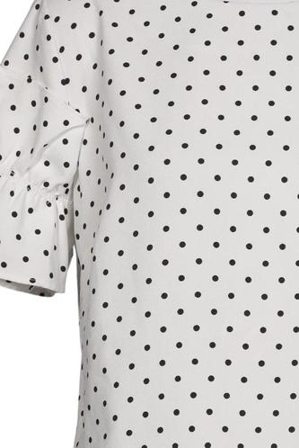 | Details | Rüschen, Kurzarm, V-Ausschnitt, verschlusslos, Punkte |