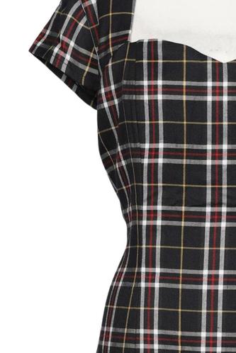 | Details | Kurzarm, V-Ausschnitt, Reißverschluss/Knöpfe hinten, Kariert |