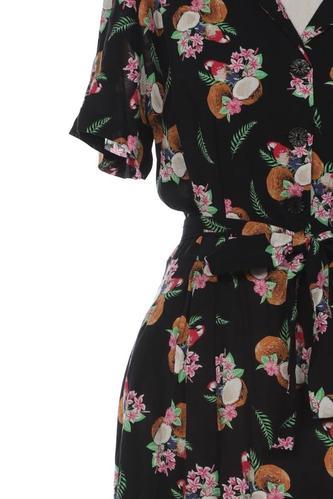 | Details | Kurzarm, Bindegürtel, V-Ausschnitt, Front Knopfleiste, Floral |