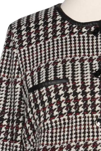 | Details | Grobstrick, Langarm, Rundhals, Front Knopfleiste, Hahnentritt |