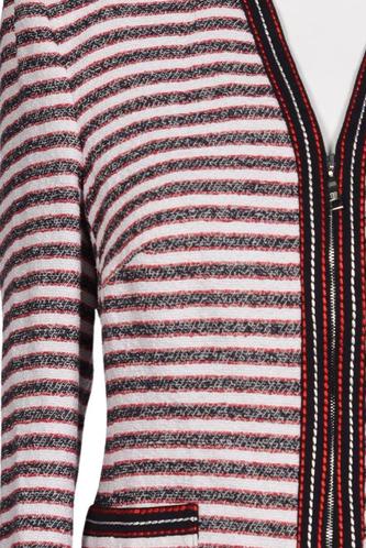| Details | Grobstrick, Langarm, V-Ausschnitt, Front Knopfleiste, Streifen |
