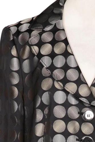 | Details | Satin, Langarm, V-Ausschnitt, Front Knopfleiste, Punkte |