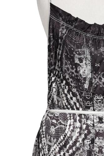 | Details | Satin, ärmellos, Bindegürtel, V-Ausschnitt, Motivprint |