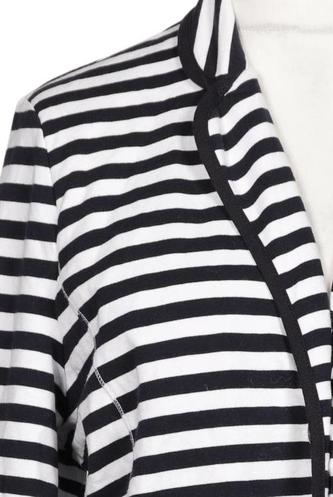 | Details | Jersey, Langarm, V-Ausschnitt, Front Knopfleiste, Streifen |