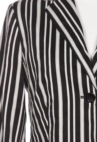 | Details | Langarm, V-Ausschnitt, Front Knopfleiste, Streifen |
