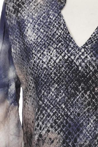 | Details | Satin, Langarm, V-Ausschnitt, verschlusslos, Motivprint |