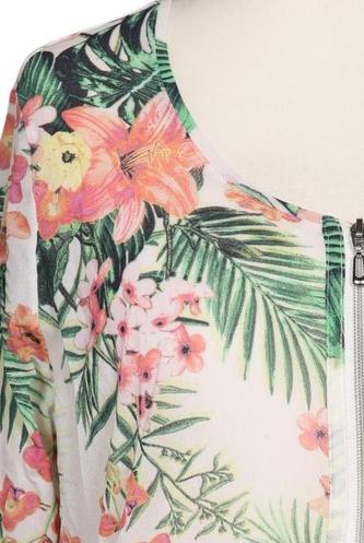 | Details | Dreiviertelarm, Rundhals, Front Reißverschluss, Floral |